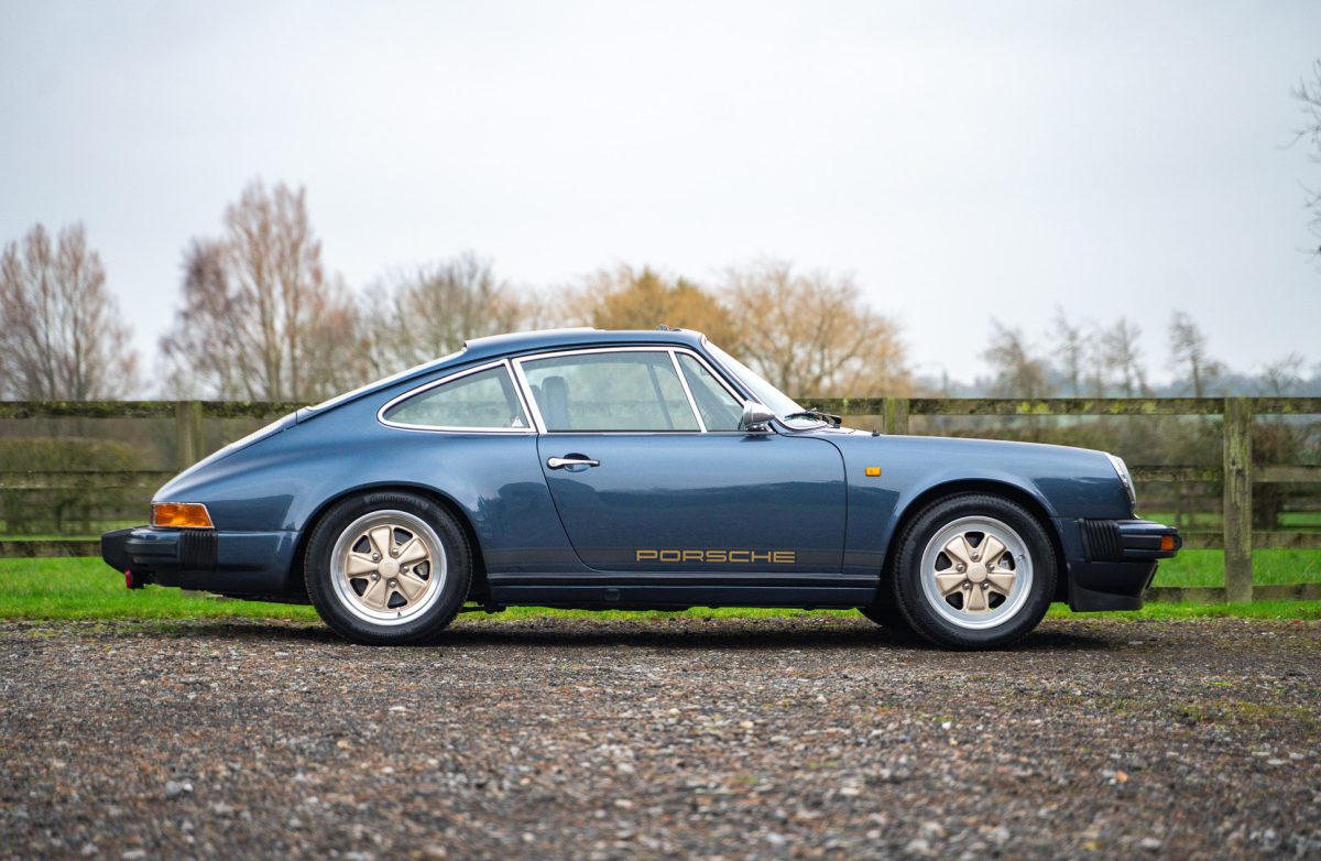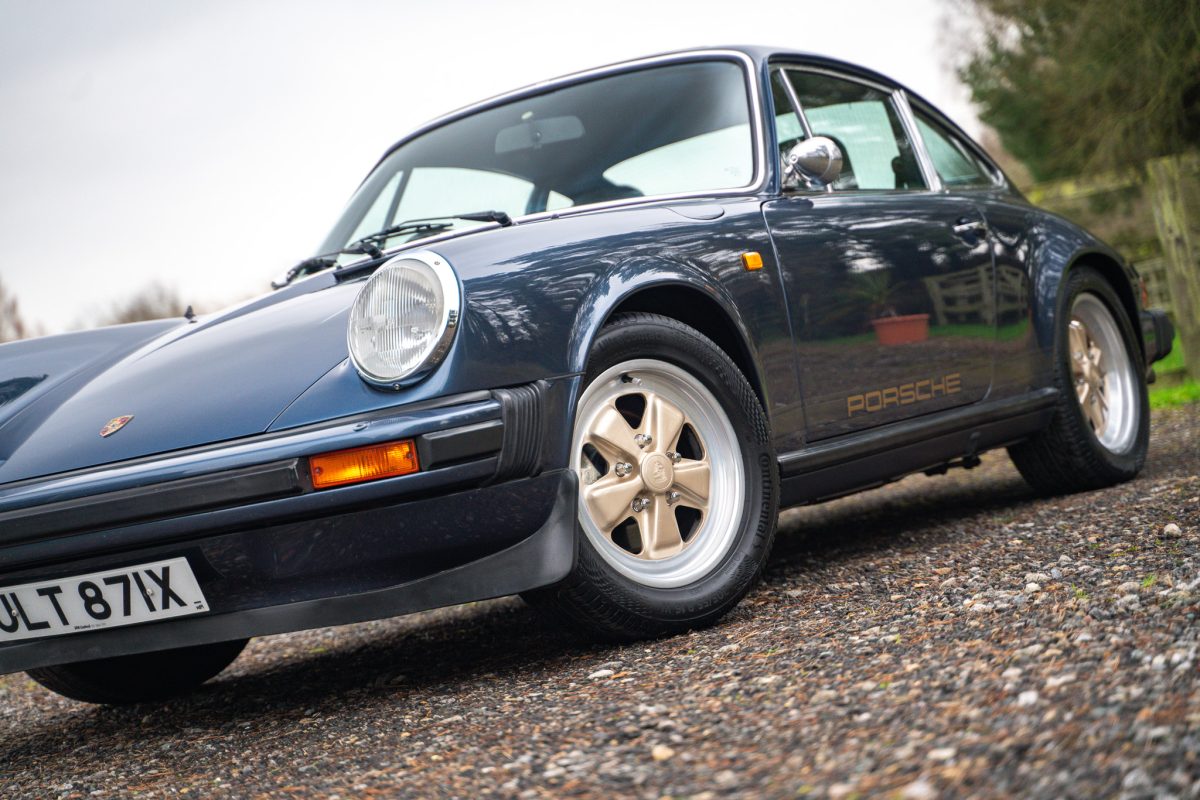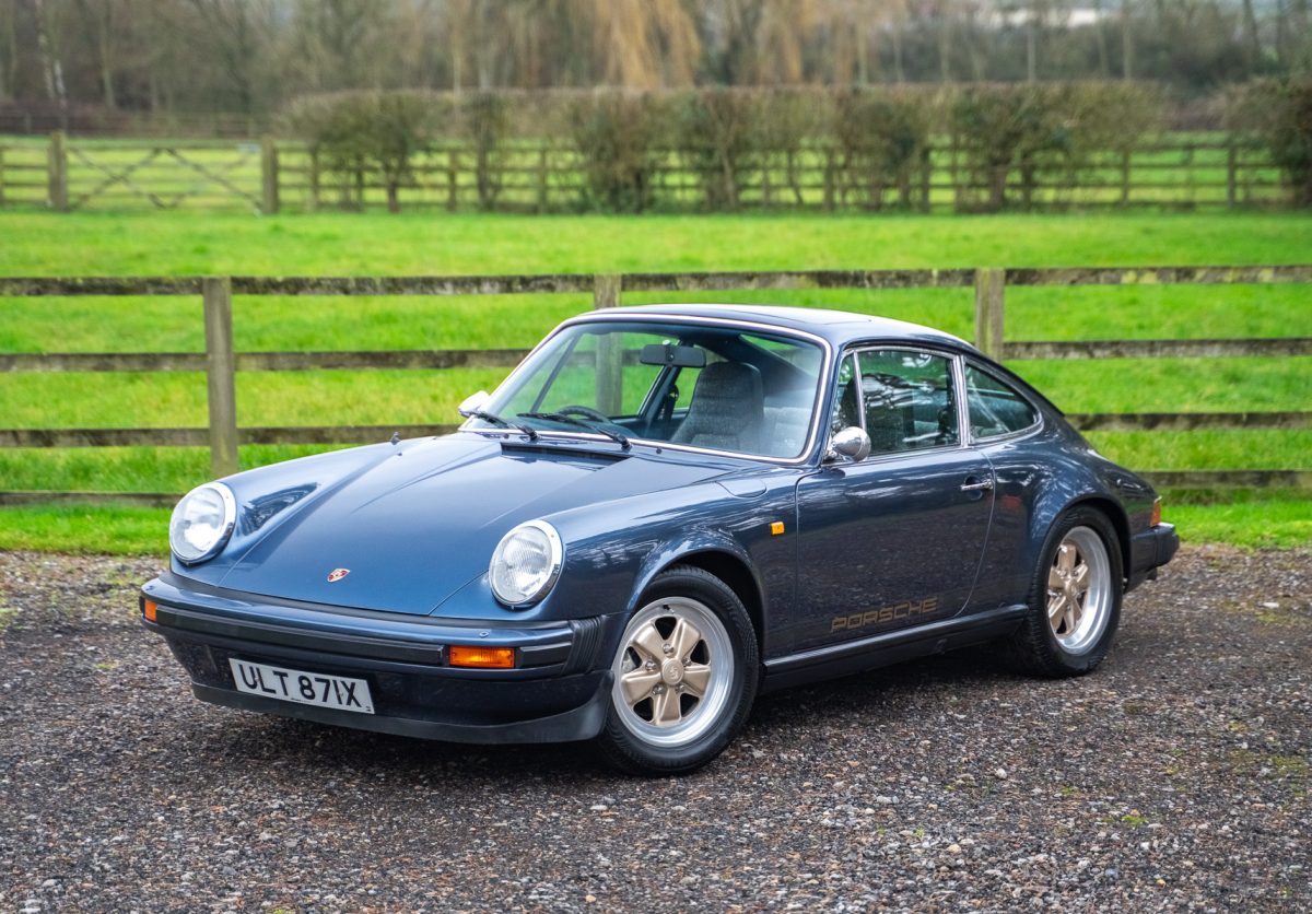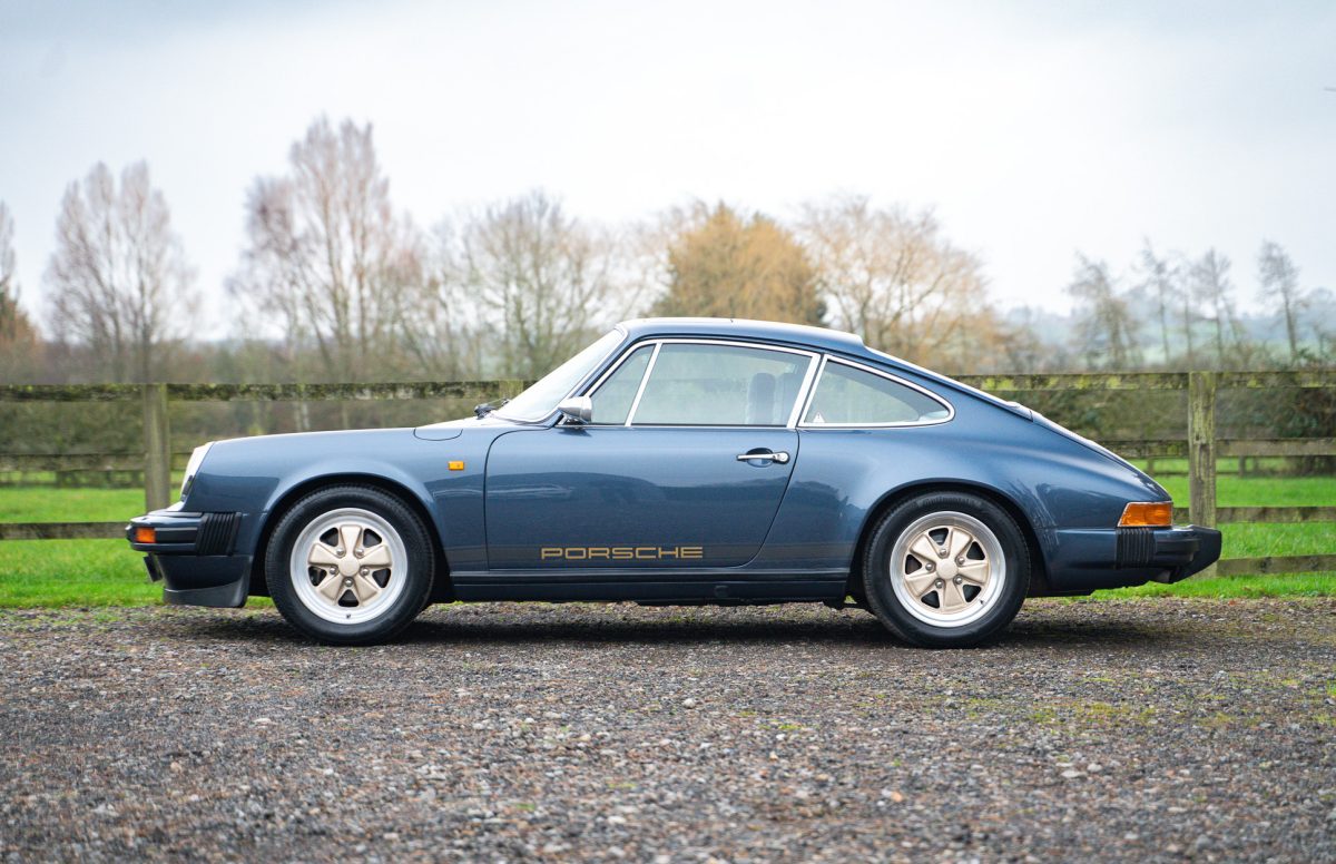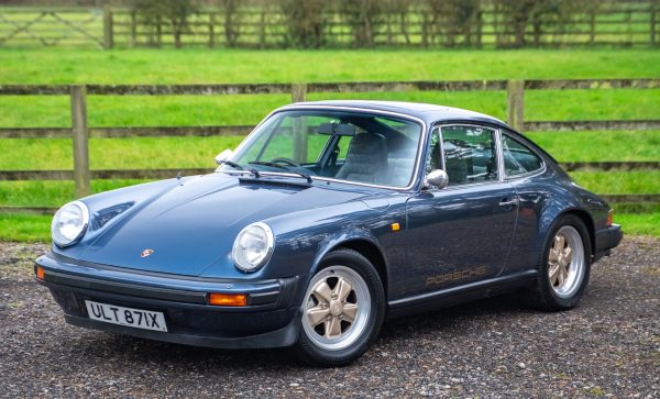 Delivered by AFN Porsche in West London in August of 1981, this is a super-special and charmingly simple Porsche SC with just two keepers from new and only 79,500 miles travelled. It is offered in subtle Pacific Blue Metallic paintwork with a cloth Berber trim interior, gold painted Fuchs style alloy wheels, blue leather top roll, knee roll and headlining. It has a powered sunroof, powered windows, a heater, and little else. Bliss!