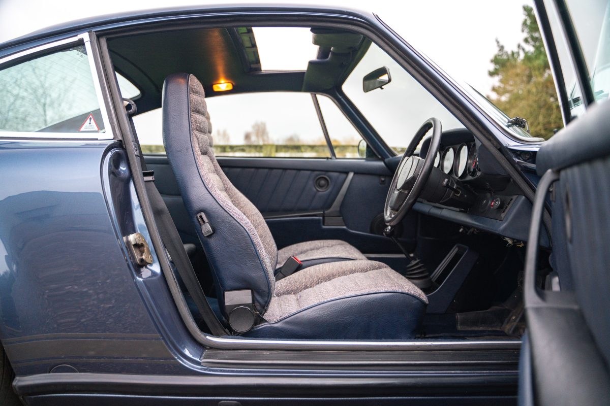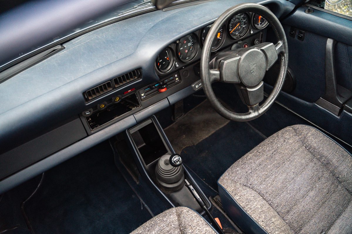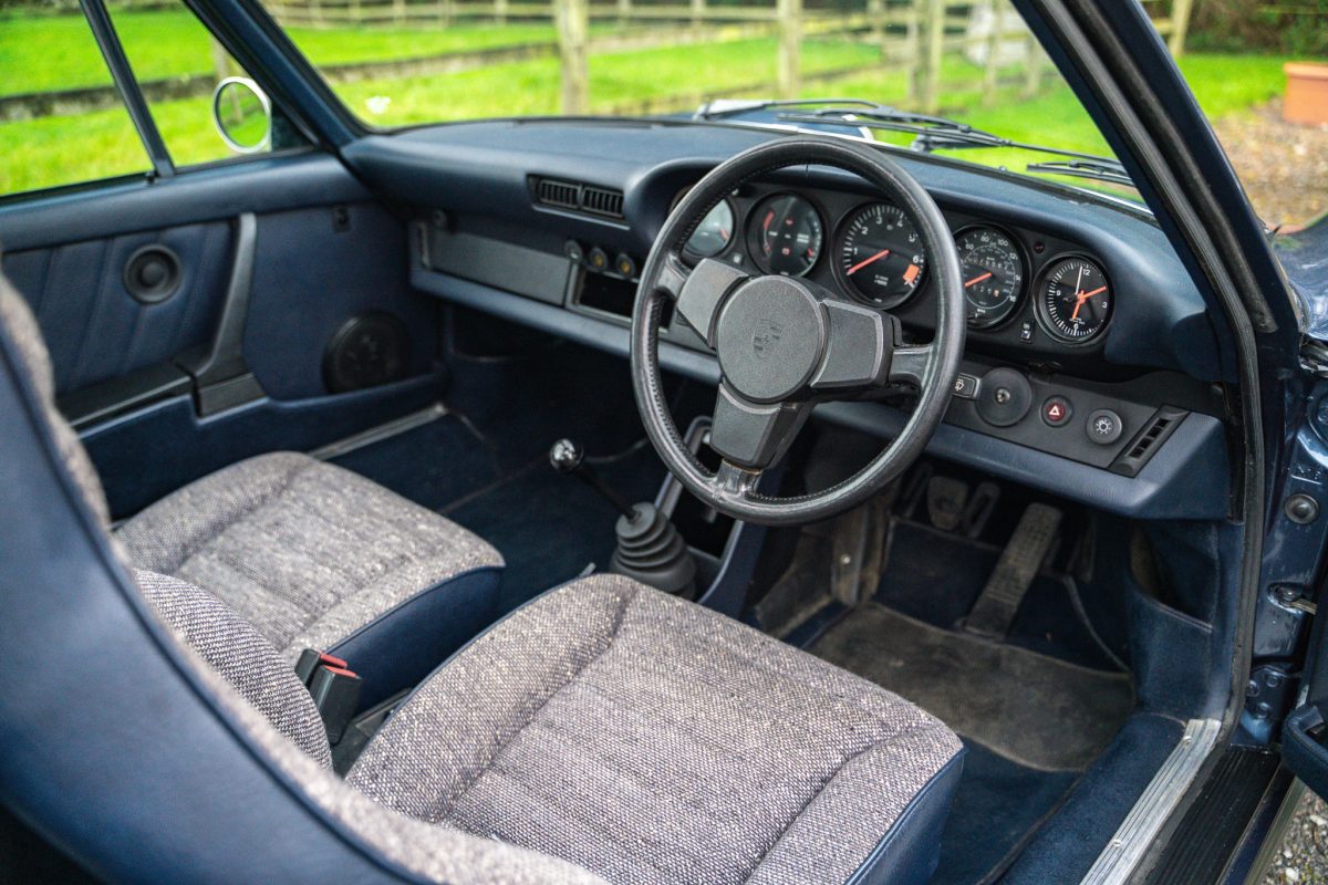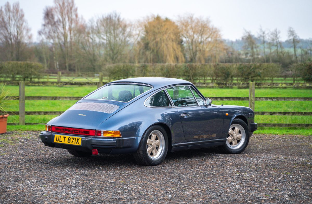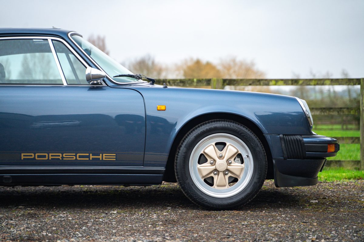 Delivered by AFN Porsche in West London in August of 1981, this is a super-special and charmingly simple Porsche SC with just two keepers from new and only 79,500 miles travelled. It is offered in subtle Pacific Blue Metallic paintwork with a cloth Berber trim interior, gold painted Fuchs style alloy wheels, blue leather top roll, knee roll and headlining. It has a powered sunroof, powered windows, a heater, and little else. Bliss!