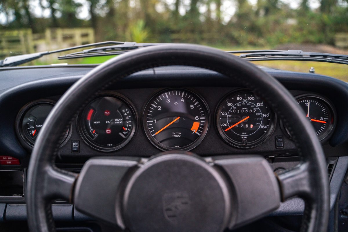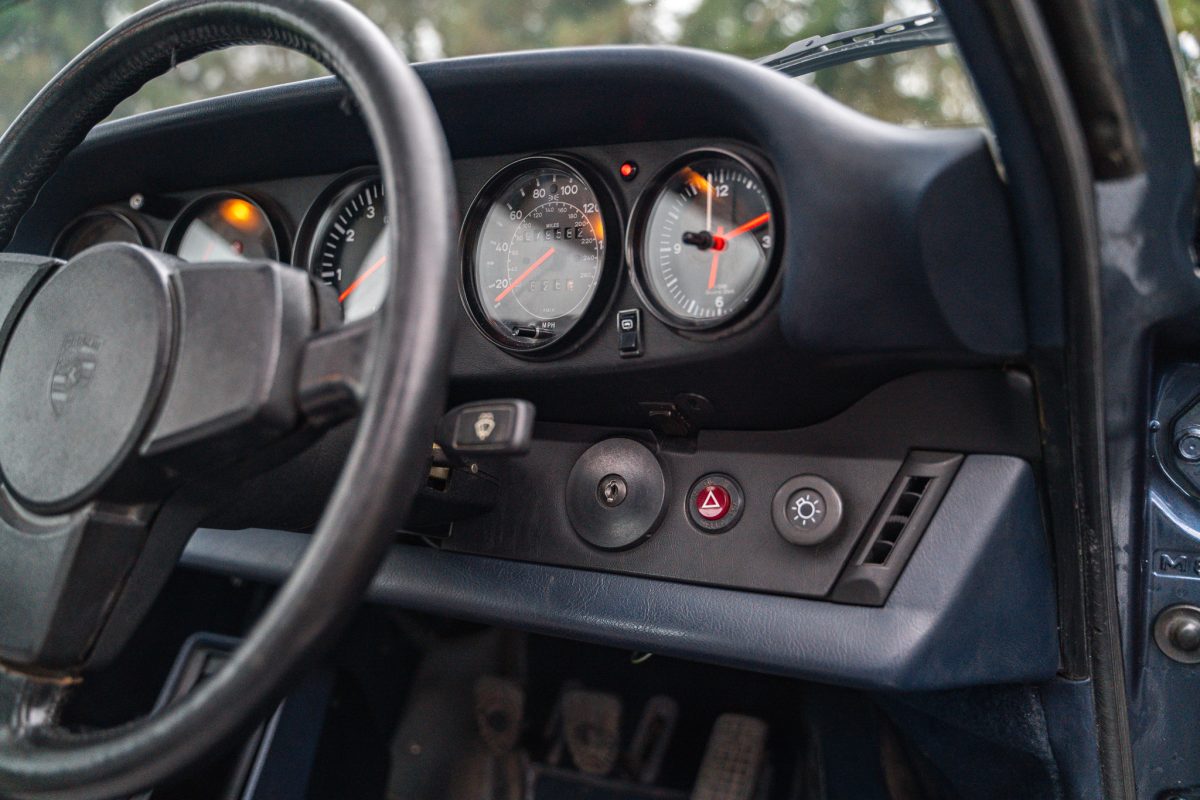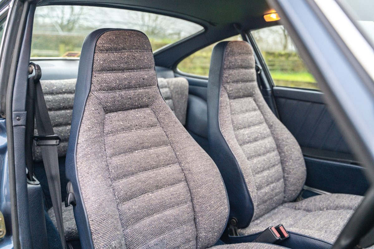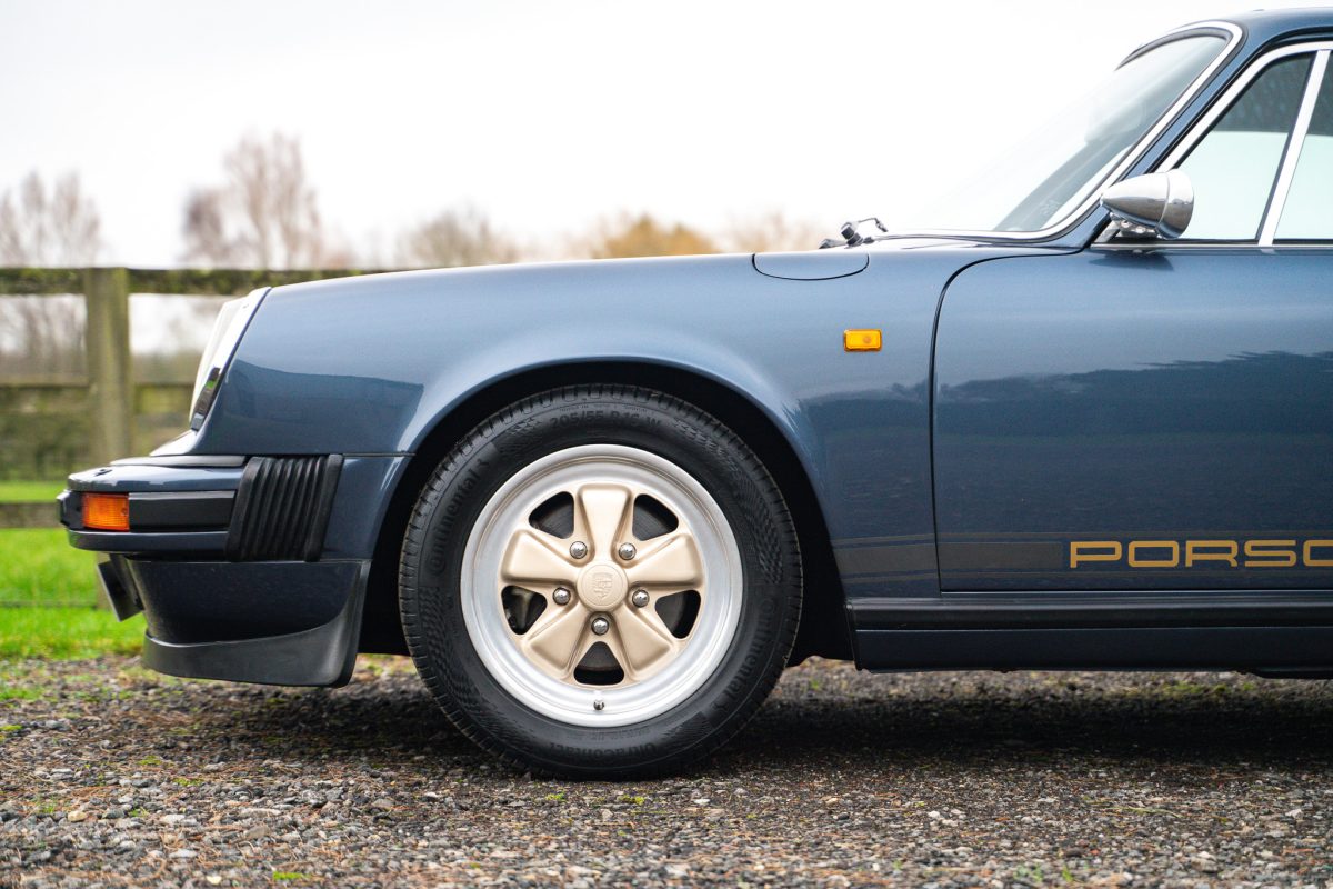 Delivered by AFN Porsche in West London in August of 1981, this is a super-special and charmingly simple Porsche SC with just two keepers from new and only 79,500 miles travelled. It is offered in subtle Pacific Blue Metallic paintwork with a cloth Berber trim interior, gold painted Fuchs style alloy wheels, blue leather top roll, knee roll and headlining. It has a powered sunroof, powered windows, a heater, and little else. Bliss!