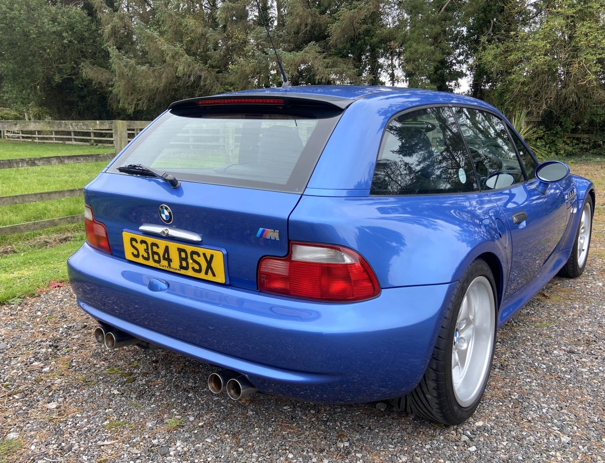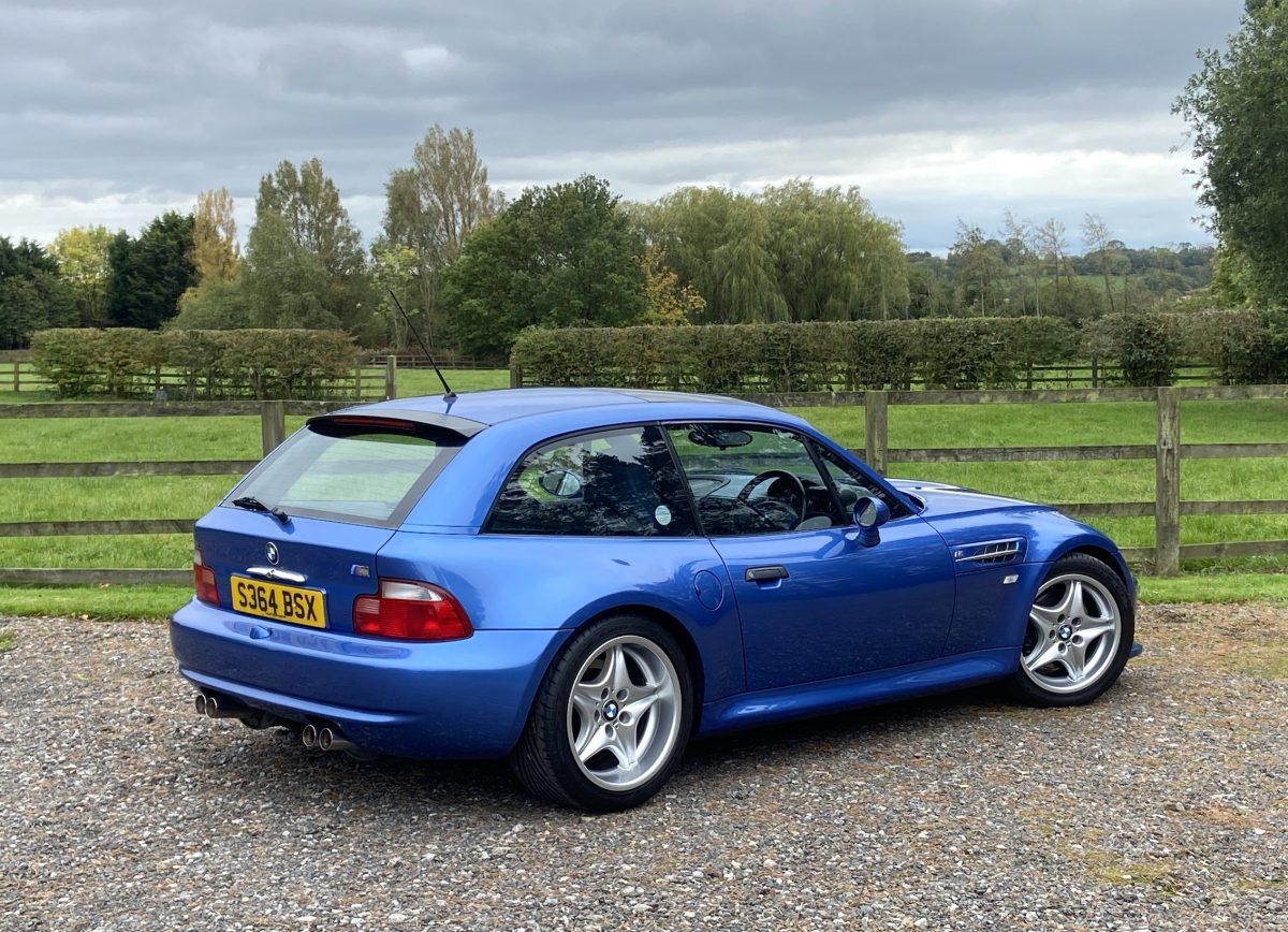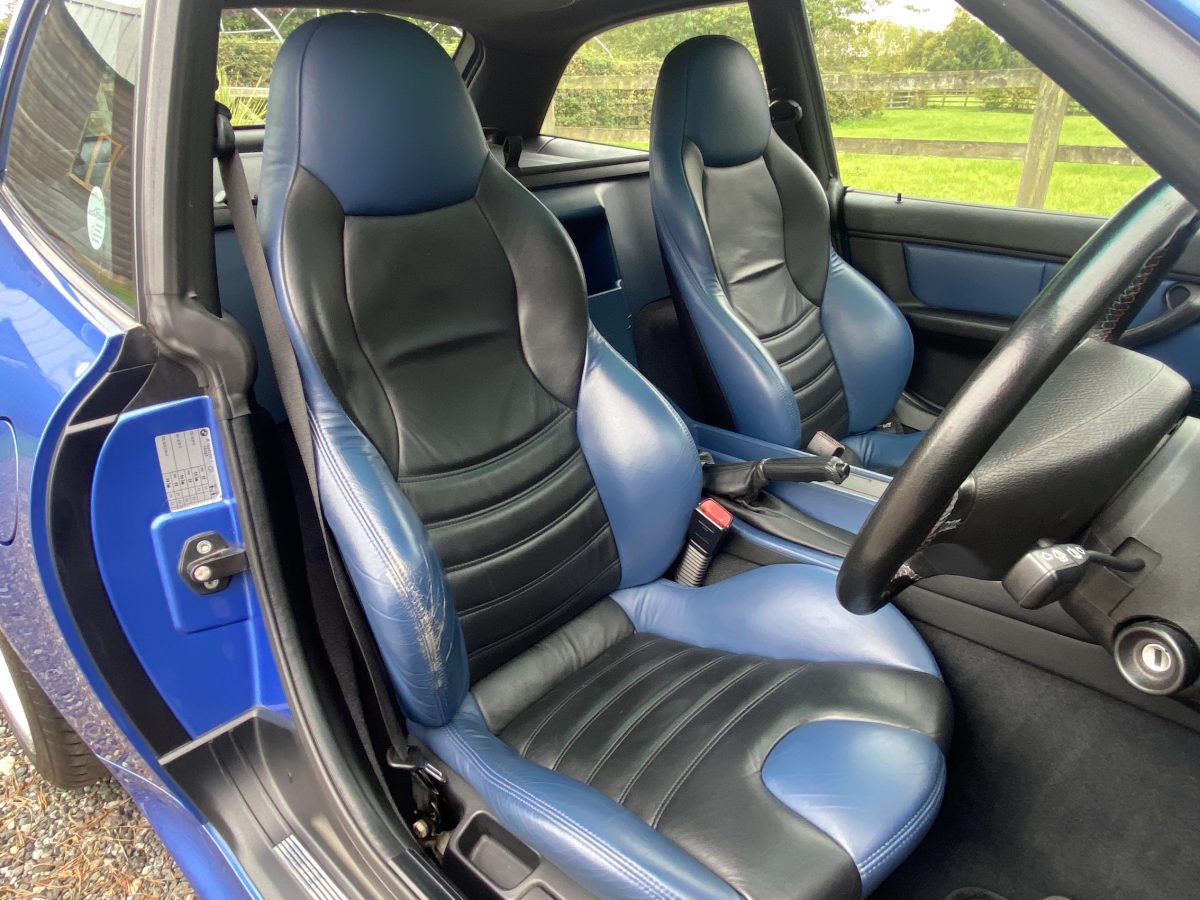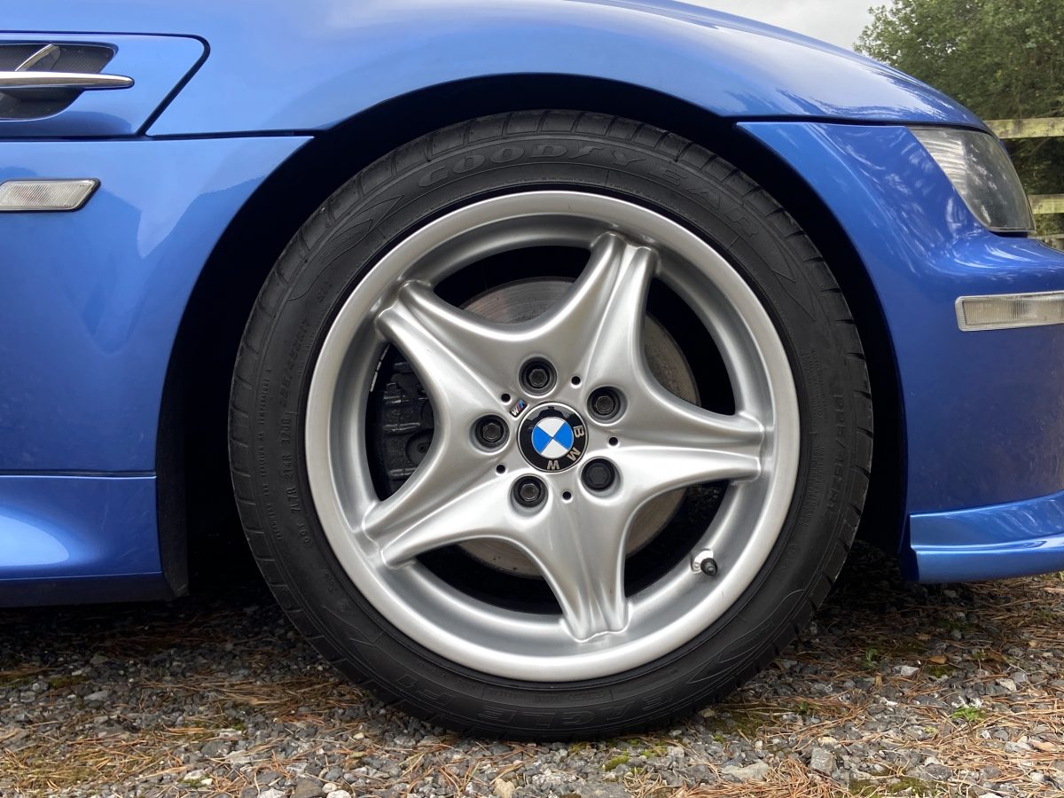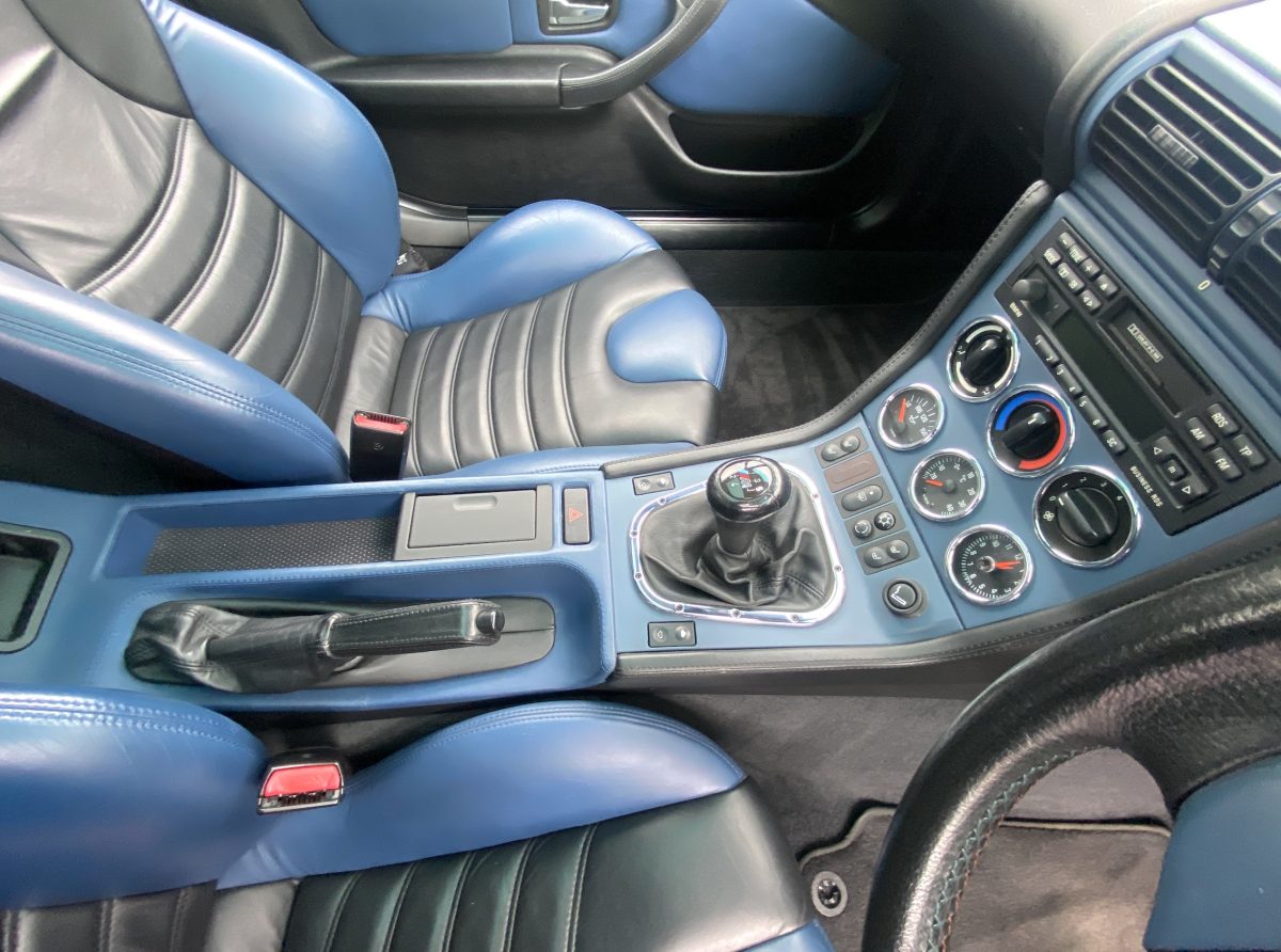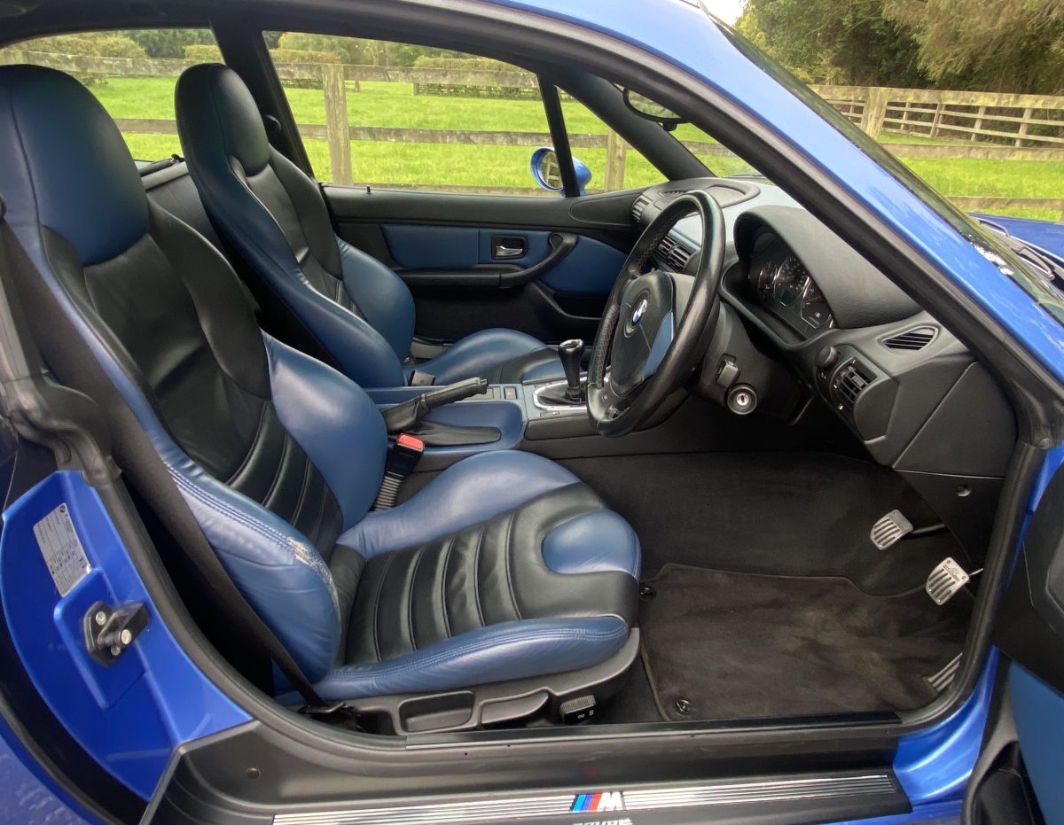 Supplied new by Menzies Motors of Stirling in Estoril Blue with a two-tone blue/black leather interior with a contrasting black headlining, this S50-engined Z3M was first registered on New Year’s Day in 1999.  In addition to the normal specification, it benefits from many options and a few upgrades including a Harman Kardon stereo with a multi-disc CD player, air-conditioning, M Sport steering wheel, electric glass tilt sunroof, electric front mirrors and windows, heated front seats and side airbags, internal net luggage guard, retractable load cover and the original toolkit remains in the boot.