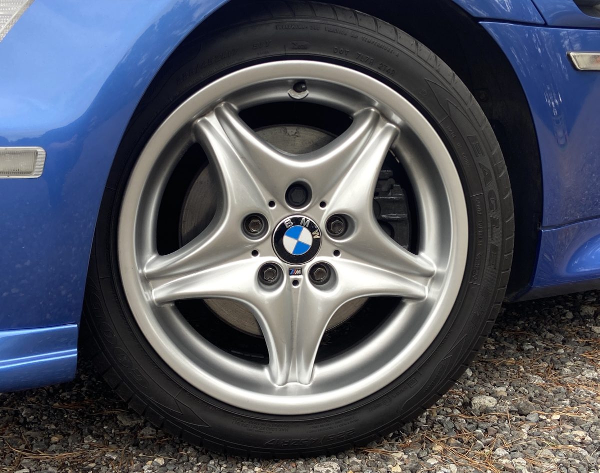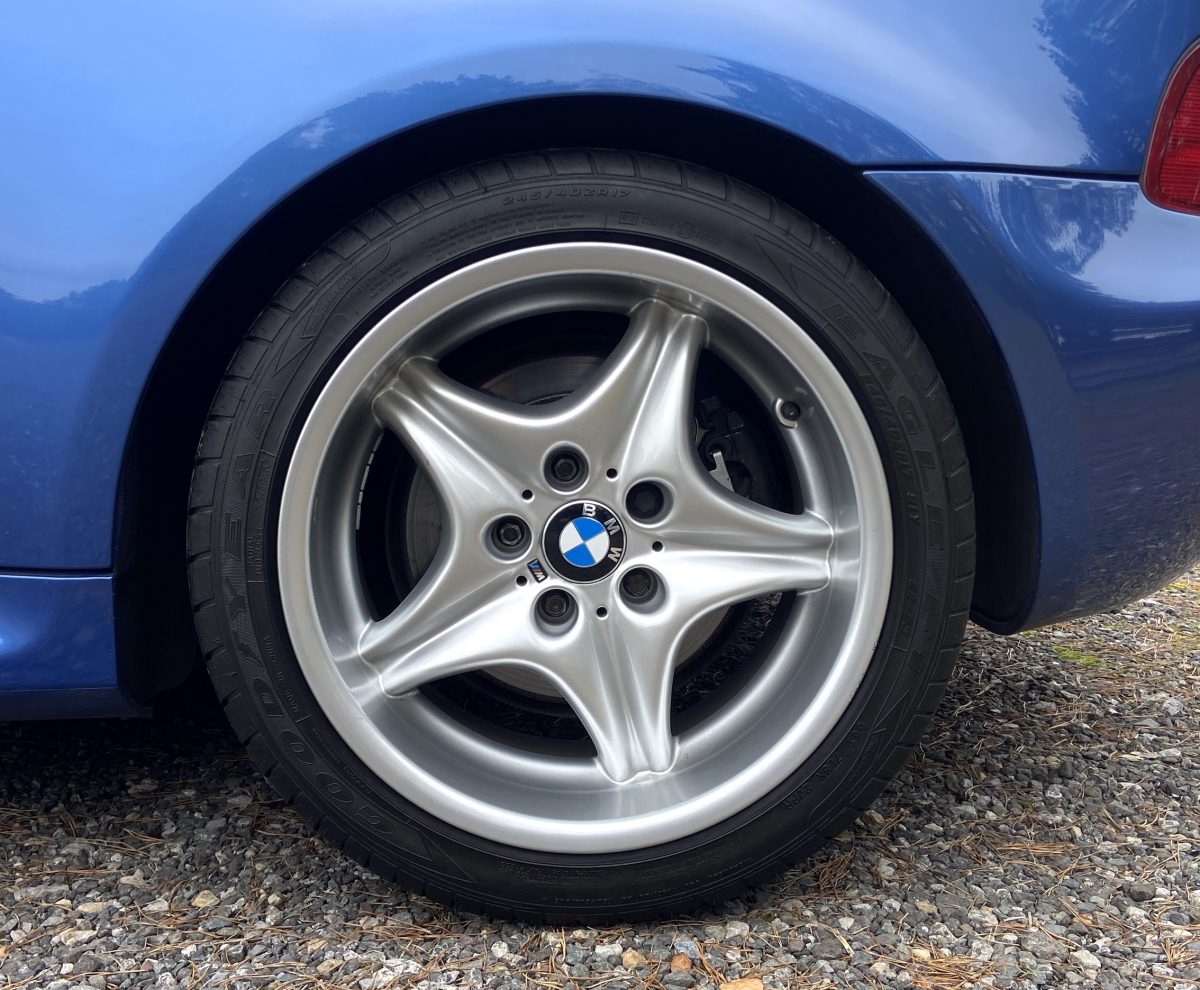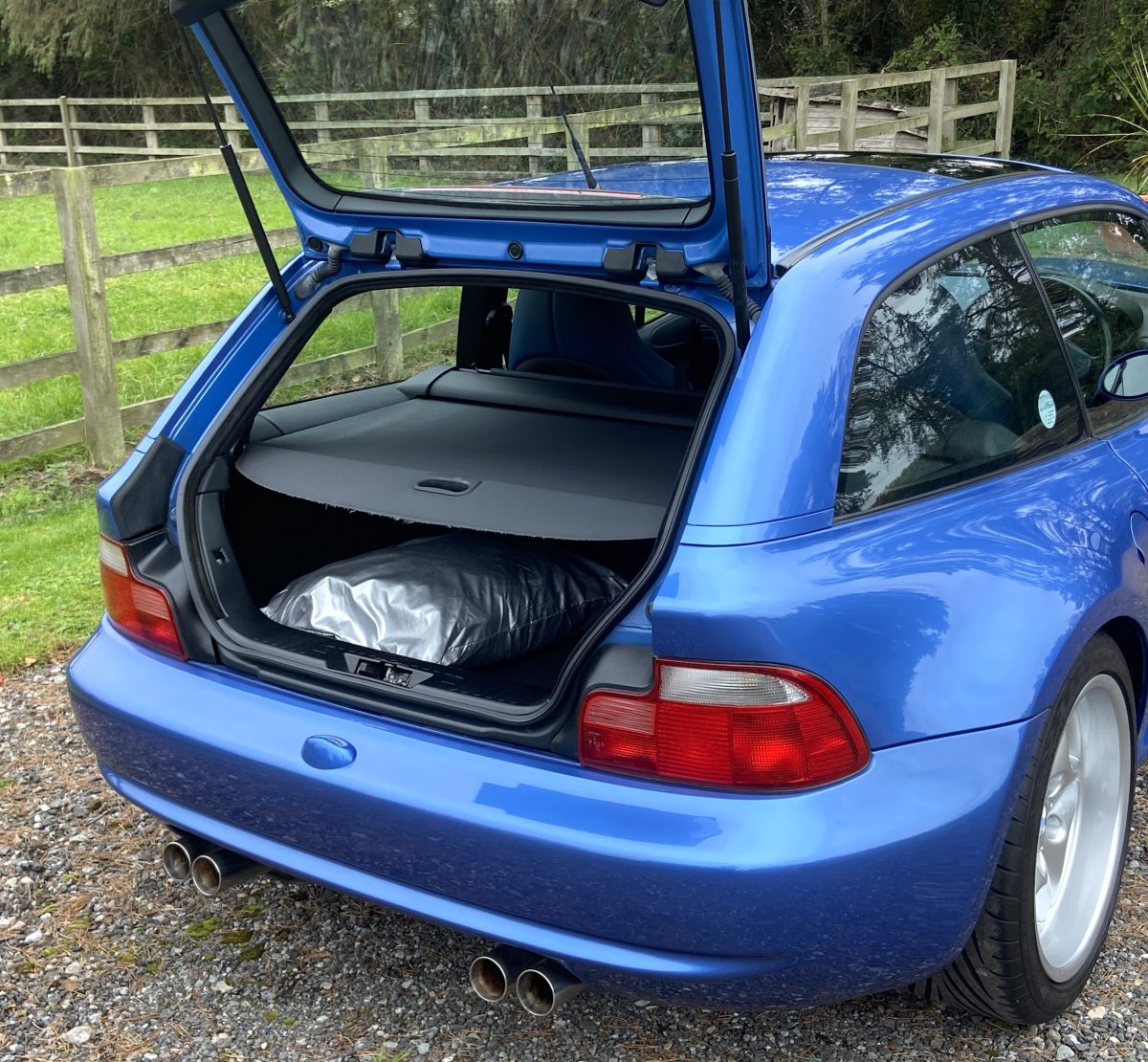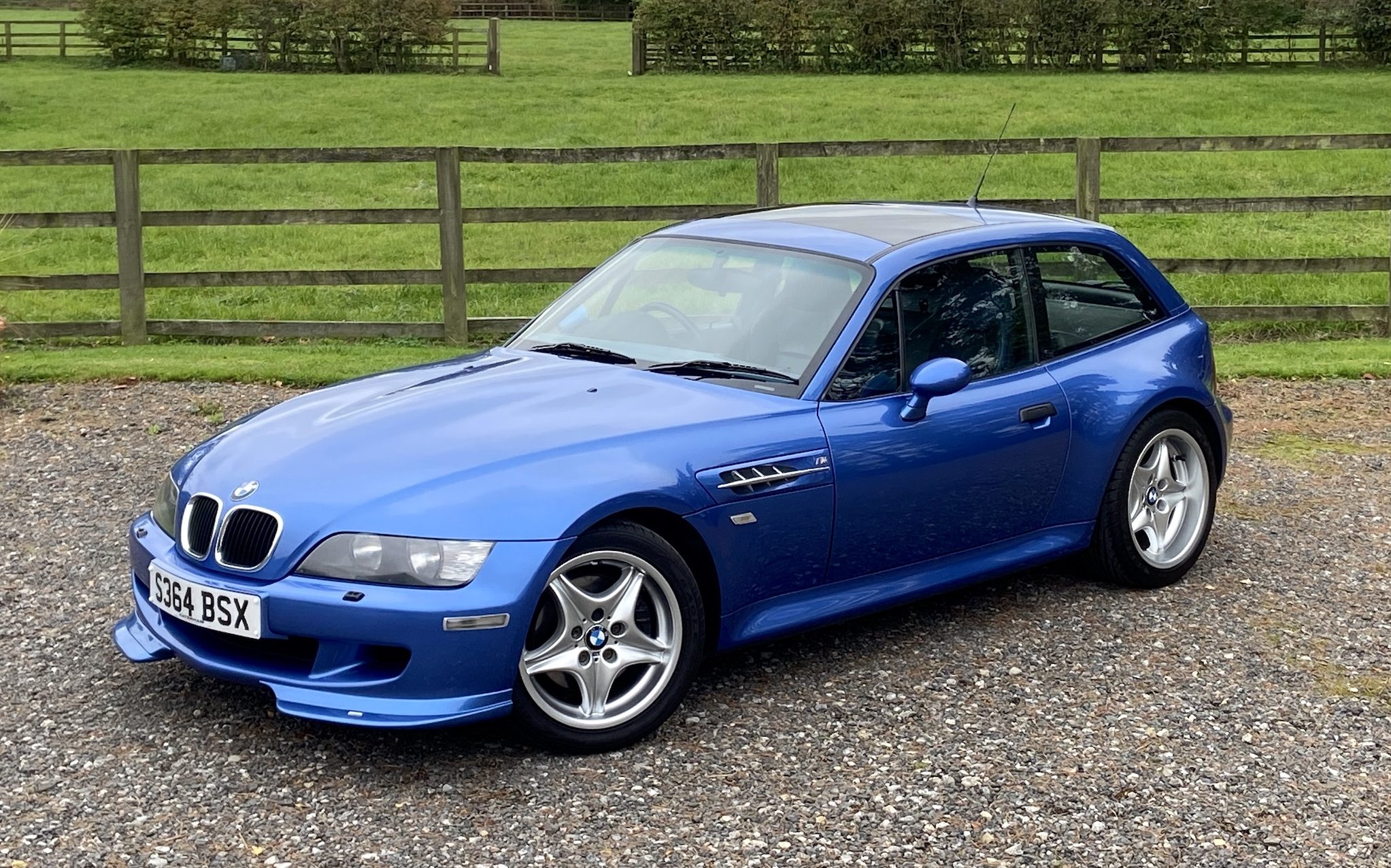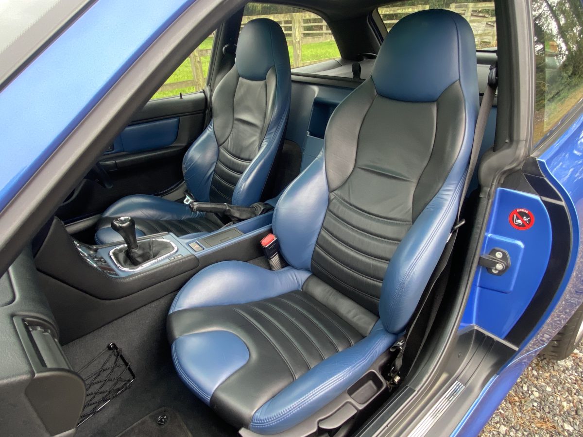Supplied new by Menzies Motors of Stirling in Estoril Blue with a two-tone blue/black leather interior with a contrasting black headlining, this S50-engined Z3M was first registered on New Year’s Day in 1999.  In addition to the normal specification, it benefits from many options and a few upgrades including a Harman Kardon stereo with a multi-disc CD player, air-conditioning, M Sport steering wheel, electric glass tilt sunroof, electric front mirrors and windows, heated front seats and side airbags, internal net luggage guard, retractable load cover and the original toolkit remains in the boot.