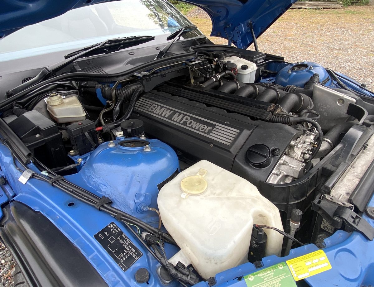 Further, at fewer than two years’ old, and showing just 24,629 miles, this Z3M Coupe had a full replacement engine by BMW in response to an issue with the conrod bearing shells which was discovered early in its life.   Being then a current-production car, BMW simply elected to implant a brand-new engine rather than attempting a repair.  The engine present has therefore only actually propelled this car for 32,000 miles.
