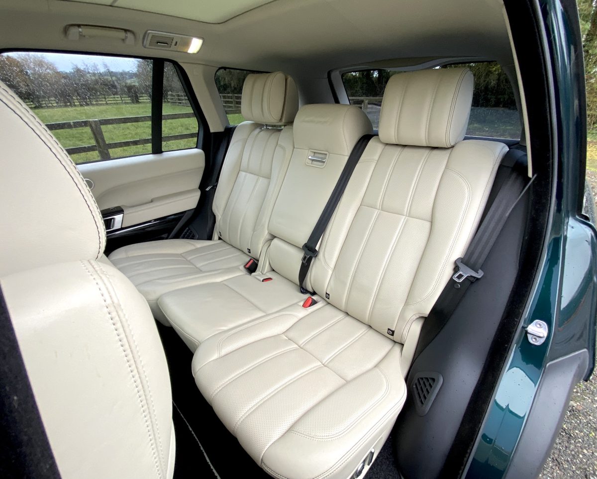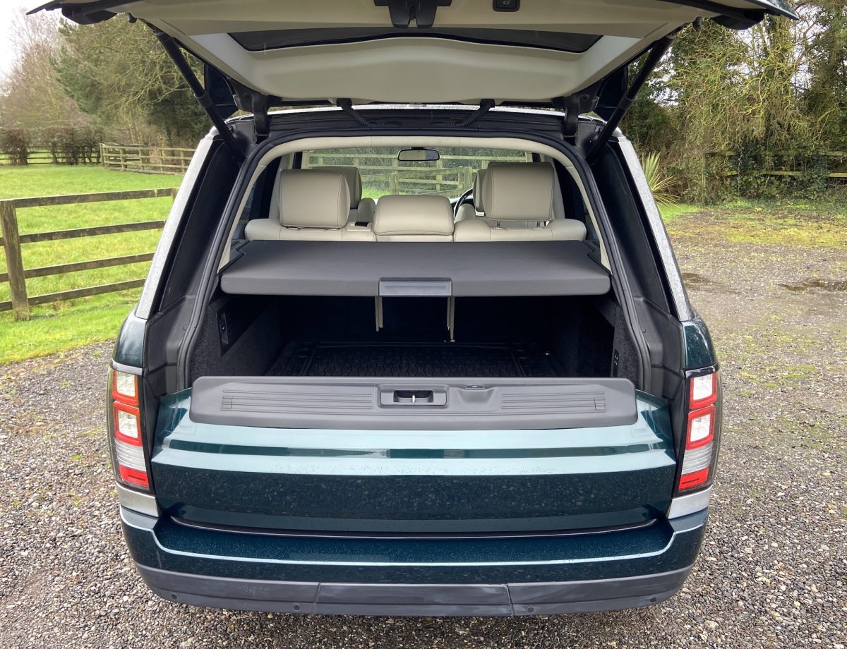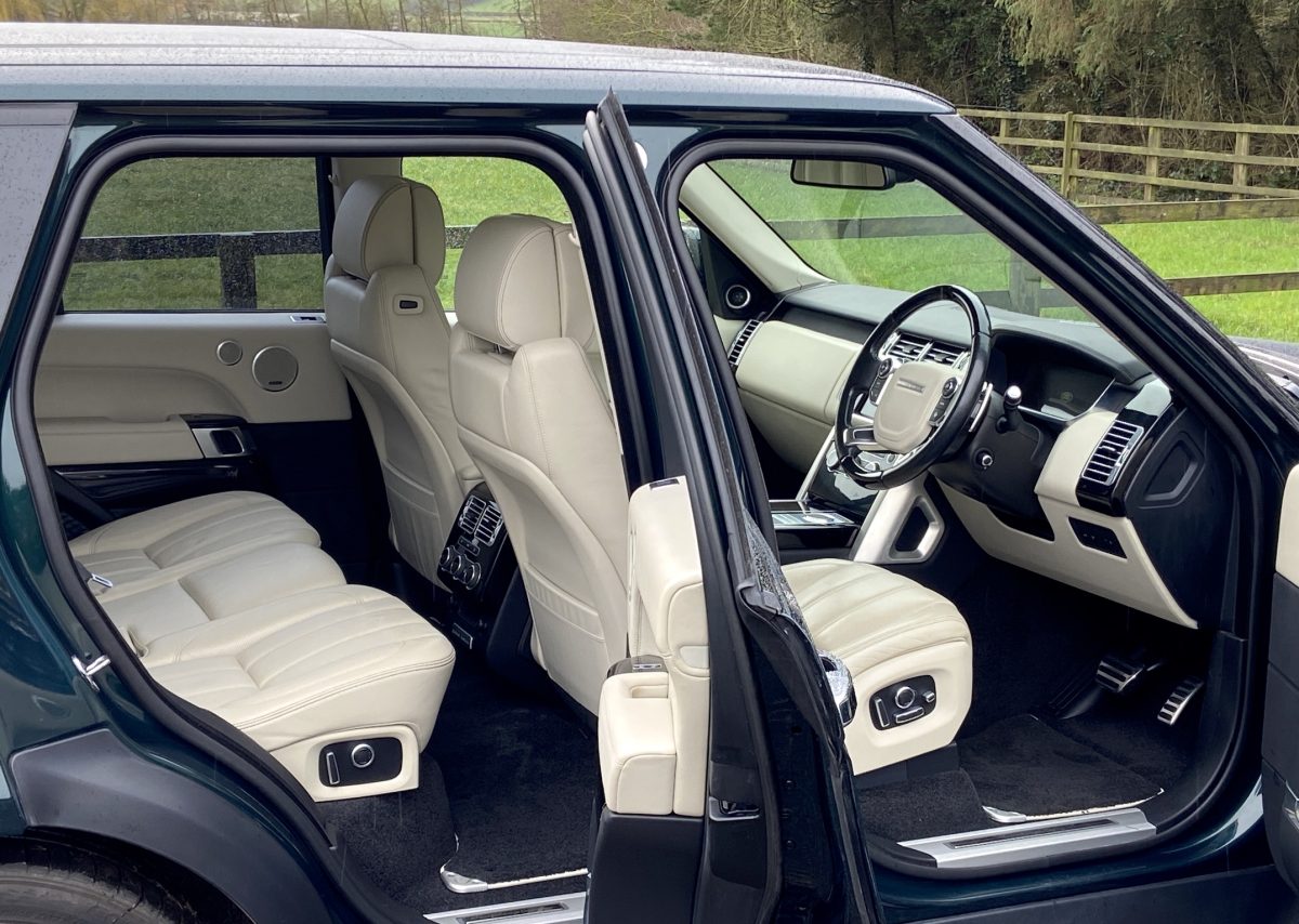 The colour is SVO Premium Palette Green contrasted with full unmarked Ivory leather interior.  Further features include 22” turbine-style alloy wheels, quality tyres, deployable side-steps, soft-close doors, massage seats, reclining rear seats, light-coloured roof lining, over mats, keyless entry, DAB radio, Bluetooth connectivity, on-board TV, mini fridge, parking assist, heated steering wheel, cruise control, powered split tailgate and almost certainly lots more we’ve forgotten to mention…