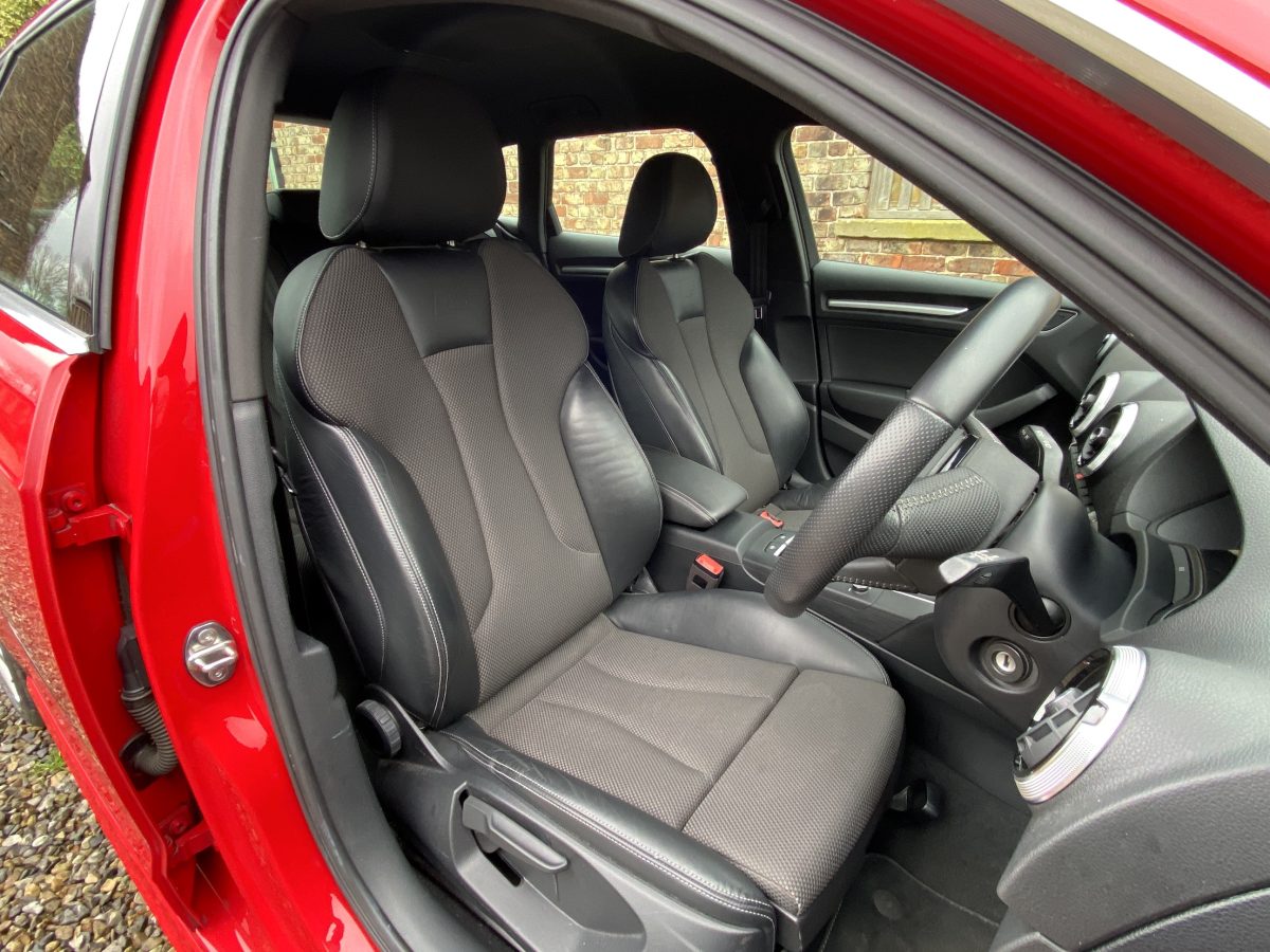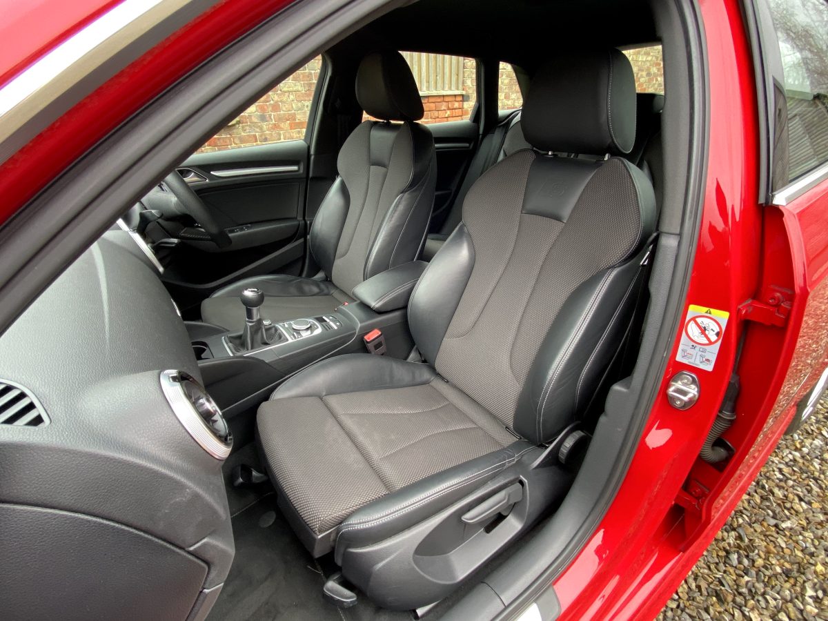 Only one lady owner from new in October 2018, this is the clean and efficient 1.5 litre petrol variant with manual gearbox and just 75,000 miles. The bright red paintwork stands very tall and is largely in very good condition, save for one or two small blemishes to the bonnet. The part cloth/part leather cabin shows little sign of wear, presenting very pleasingly indeed. This Audi comes from a home without children so it’s been spared the levels of abuse that only little angels can inflict on a car!